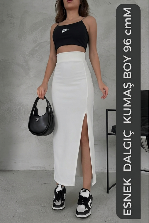 Kadın Yırtmaçlı Uzun Kalem Etek Esnek Dalgıç Kumaş Boy 96cm